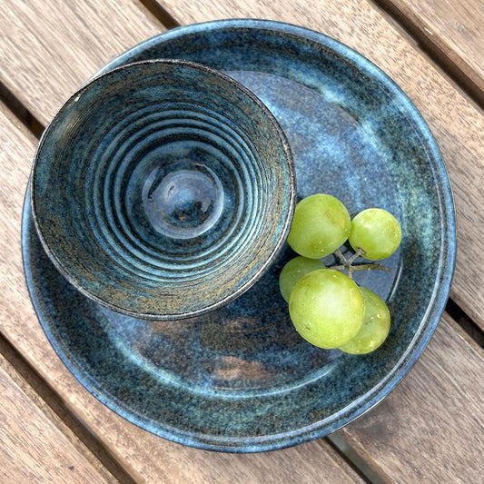Inspirerad av släktgården i Delsbo och sekelskiftet. De vackra konturerna och tallrikarna är helt unika, och de finns i tre utvalda Hälsinglands-inspirerade glasyrer som vi kallar blåbär, snövit och mossa. Får det dig också att tänka på skogarna i norr?
